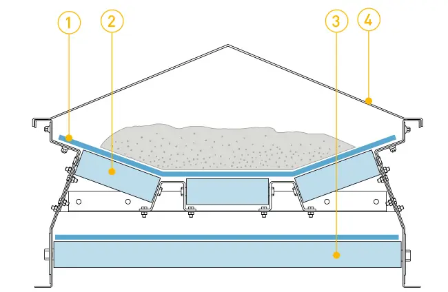 PETKUS roller belt conveyors offer a low-cost, variable solution for internal horizontal material flow in silos and grain storage. Suitable for granular bulk product, they provide gentle transport with a conveying belt running on rollers.