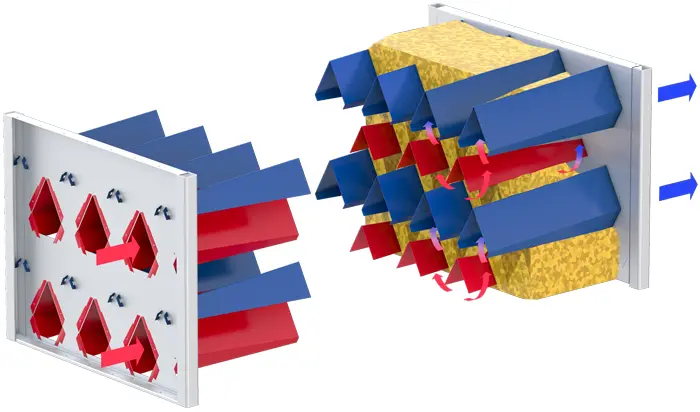 Теплоизоляция, дополнительная рециркуляция тепла, воздушные каналы конической формы и осевой вентилятор