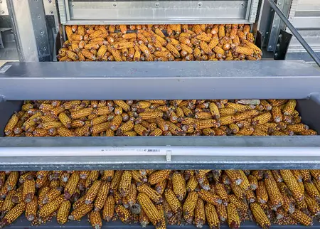 Сушильный комплекс DHS PETKUS предназначен для сушки кукурузных початков послеуборочной влажности, которые очищены от обертки. При использовании реверсивного процесса с двумя проходами сушильные камеры соединены между собой центральной системой вентиляционных каналов.
